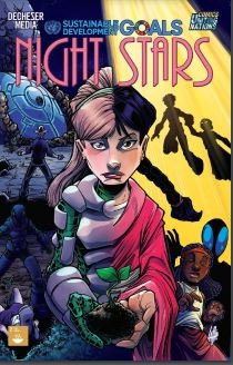 This comic book takes students through an exciting journey following the story of three young people that can travel through time. Leslie, her brother John and their friend Adam stumbled upon a spaceship with special suits that gave them each unique power. Since then, they have travelled through time to do what they can to save the world in various ways. One night they descend upon the village where a little girl Lihau sits on her roof feeling helpless. Leslie invites her to come to her spaceship for a special task. Lihau joins a few other children on board, and they all whisk away to barren farmland. The children ask what is wrong, and Leslie and her friends explain the significance of the barren land. They soon learn about an enemy that has plagued humanity for a very long time now and needs to be stopped. This enemy is nonetheless HUNGER.