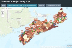 The ENRICH Project Story Map is part of the Enrich project (Environmental Noxiousness Racial Inequities and Community Health), which is a collaborative community-based project investigating the cause and effects of toxic industries situated near Mi’kmaq and African Nova Scotian communities. This story map explores the concept of environmental racism and how it relates to Nova Scotia. ENRICH plotted the locations of industrial polluters such as landfills, coal plants and toxic waste facilities on a map of Nova Scotia. The map aims to show that pollution disproportionately affects communities of African Nova Scotians and Indigenous People.