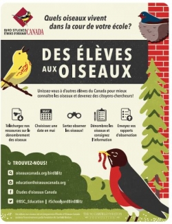 Des élèves aux oiseaux est une activité de plein air engageante où les élèves de partout au Canada se réunissent chaque mois de mai pour compter et identifier les oiseaux locaux. Une fois cette tâche terminée, ils partagent leurs conclusions via un portail en ligne. La meilleure partie est que leurs observations aident les scientifiques à surveiller les oiseaux du Canada!