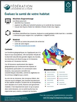 Cette ressource serait excellente pour introduire l'effet du changement climatique sur les écosystèmes dans les cours de sciences et de biologie. La ressource aidera les élèves à explorer l'impact du développement humain sur la santé de leur écozone.