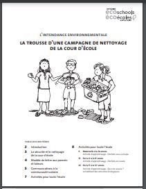Dans cette trousse, vous trouverez des conseils et suggestions utiles pour la tenue d’une campagne efficace d’intendance environnementale à la grandeur de l’école. Ces activités et outils sont conçus pour susciter la réflexion critique des élèves quant à l’impact des déchets sur l’environnement et aux gestes à poser pour préserver les espaces extérieurs et la biodiversité. La trousse comprend des outils de communication et des activités pour toute l’école, pour l’élémentaire comme pour le secondaire. Vous y trouverez aussi des activités d’apprentissage en classe pour les cycles primaire, moyen, intermédiaire et secondaire en collaboration avec le Grand nettoyage des rivages canadiens.